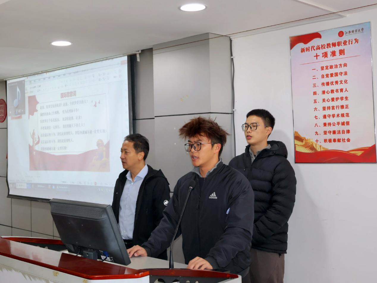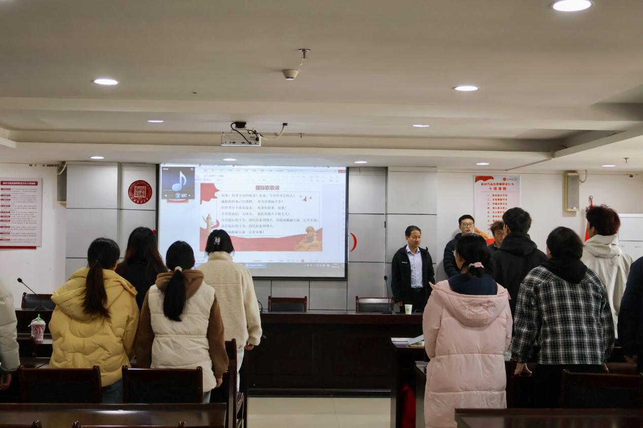 12月6日上午,体育学院第二十一期入党积极分子培训班第四讲在麦庐图文信息大楼704会议室圆满举行。开讲前,全体学员起立,在学员许志涛的领唱下齐唱《国际歌》。本次培训特邀江西财经大学宣传部部长韩国玉担任主讲人,以“学习党的二十届四中全会精神——感悟中华民族伟大复兴更深沉的力量”为主题,为全体学员带来一堂深刻的思想淬炼与精神洗礼课。