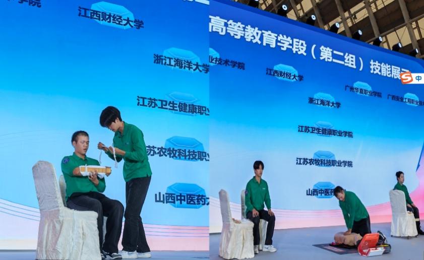 10月24日至26日,全国学校急救教育技能展示活动京津冀邀请赛(第86届中国教育装备展示会同期重要活动)在青岛世博城国际展览中心盛大举行。此次活动汇聚了众多急救教育领域的精英,江西财经大学作为江西省唯一受邀高校,派出体育学院严伟老师带领张宏伟、吴晨旭两位同学参赛,与来自全国10个省的27支队伍同台竞技。最终,江财学子凭借规范的操作、专业的素养赢得专家高度评价,荣获技能优异证书,在全国各地500余名教育行政部门、学校的专家及师生代表面前,充分展现了江财学子在急救教育领域的扎实功底与卓越风采。