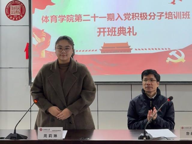 11月20日,体育学院于麦庐图文信息楼704会议室隆重召开第二十一期入党积极分子培训班开班仪式。体育学院党委副书记詹新寰、专职辅导员周莉琳出席开班仪式,来自体育学院及外国语学院的入党积极分子们齐聚一堂,共同开启党课培训的新篇章。仪式由蔡楚楚主持。