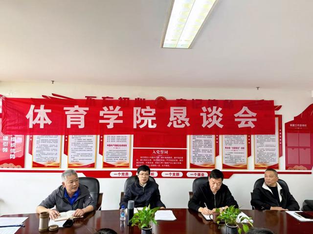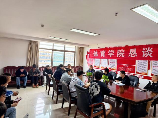 4月8日下午,体育学院在图文信息大楼707会议室召开师生恳谈会,旨在进一步畅通师生沟通渠道,精准回应学生诉求,切实解决同学们在学习、生活、训练中的实际问题。学院党委书记欧阳迎、党委副书记詹新寰、副院长涂庚龙、副院长齐健麟、场馆中心主任严磊、学工办主任戴玮、专职辅导员周莉琳出席恳谈会,来自各专业、各年级的14名本硕学生学生代表参加。会议由学院党委副书记詹新寰主持。